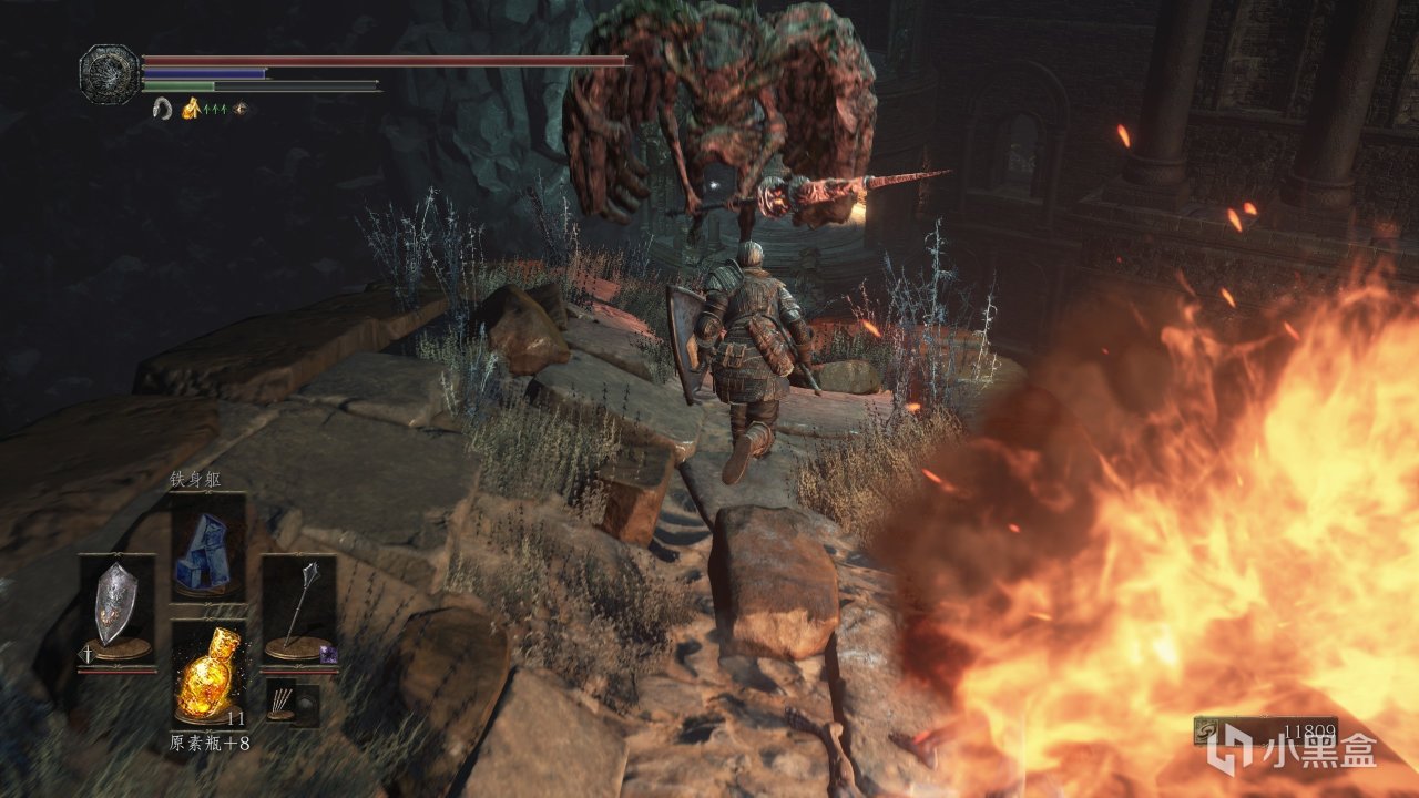 開門,裏面的怪好像叫掌嬰(懷疑是拿魂2大河馬改的),不知道弱什麼,根據外表推測,應該是弱斬擊和出血,火抗應該也不高,弱點是肚皮