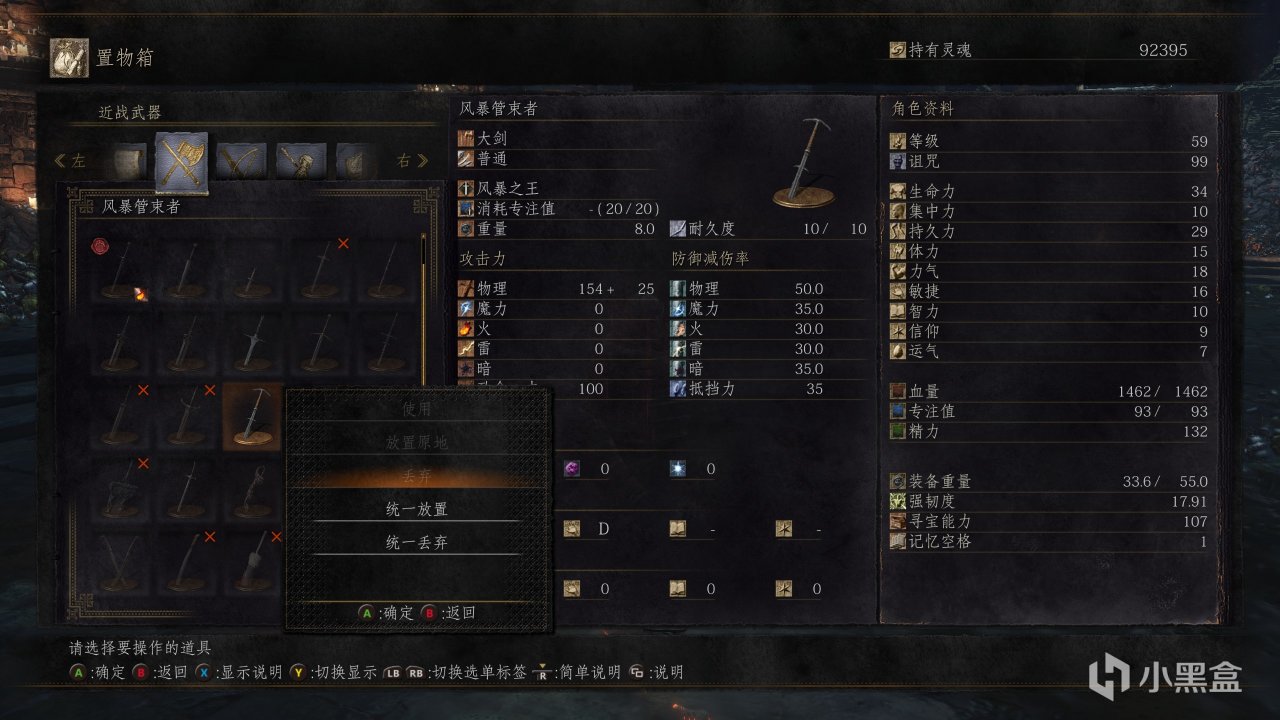 注意看,風暴管束者是無法丟棄的(可以塞箱子裏)