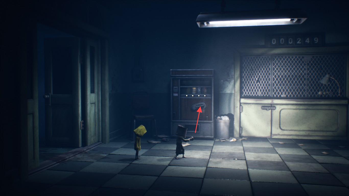 饿肚子(成就):失灵碎片获取后,回到原来来的位置往右走一小段有个走廊,往上走右边有个房间里面有自动售货机,搬空就好