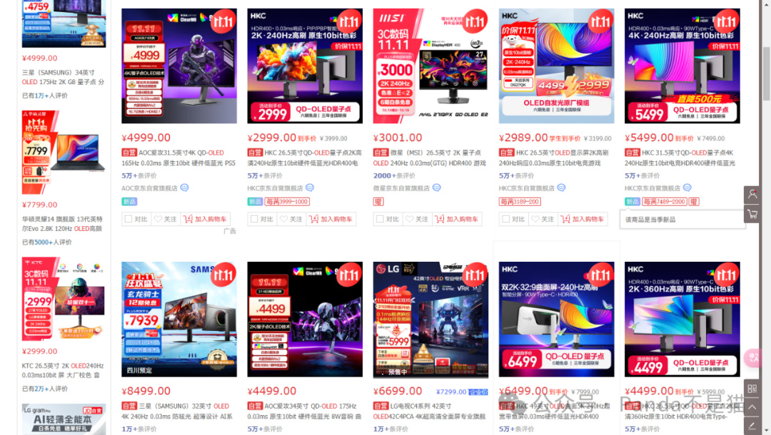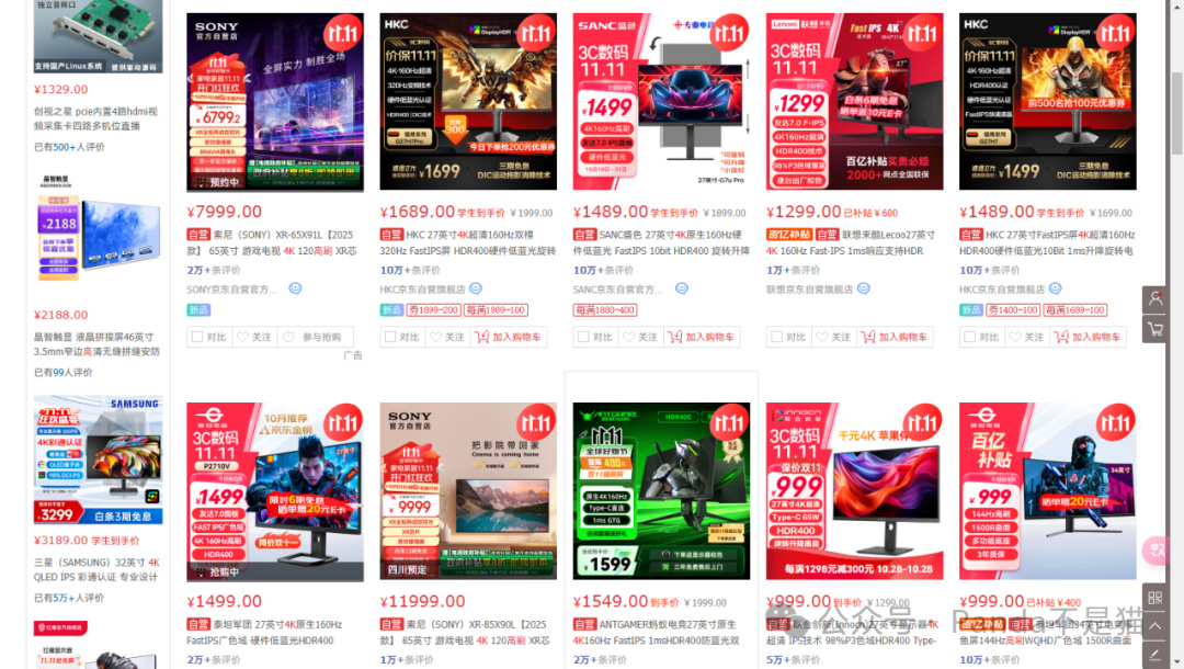 這裏的“百元檔”實際上是指500-1000元這個價格區間。或許有人會質疑,這個價位的顯示器真的可靠嗎?這種想法可就大錯特錯了。畢竟,我們現在生活在2024年,技術進步和市場內卷帶來了價格的大幅下降。如今,一款普通的IPS高刷新率的2K顯示器,市場價格大多已降至千元左右。那個動輒兩三千元才能入手2K屏幕的時代已經一去不復返了。不信?打開任何一個購物平臺,輸入“2K高刷顯示器”,你會發現一大波價格親民的顯示器選項,都在千元以下等着你。