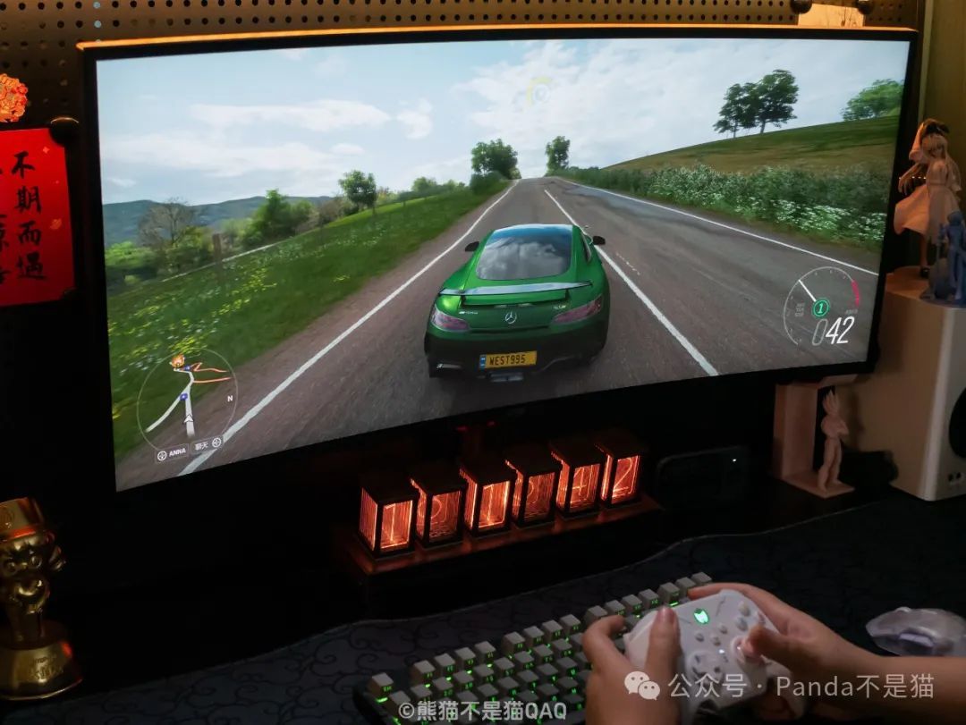 川升CS3555曲率爲採用了1900R,帶來接近人眼自然視野的彎曲度,讓你在正對屏幕時感受到被內容包圍的沉浸感。其21:9的超寬屏幕比例符合現代電影拍攝標準,確保電影畫面全屏無黑邊顯示,搭配四面超窄邊框設計,極大拓寬了視覺邊界,減少干擾,再加上高質量音響系統,宛如私人影院。對於熱愛駕駛遊戲的玩家來說,21:9的超寬曲面屏幕在模擬駕駛和競速遊戲中更能提供無與倫比的沉浸體驗,尤其是在《地平線》這樣的遊戲中,其帶來的視覺享受是其他直屏顯示器無法比擬的。