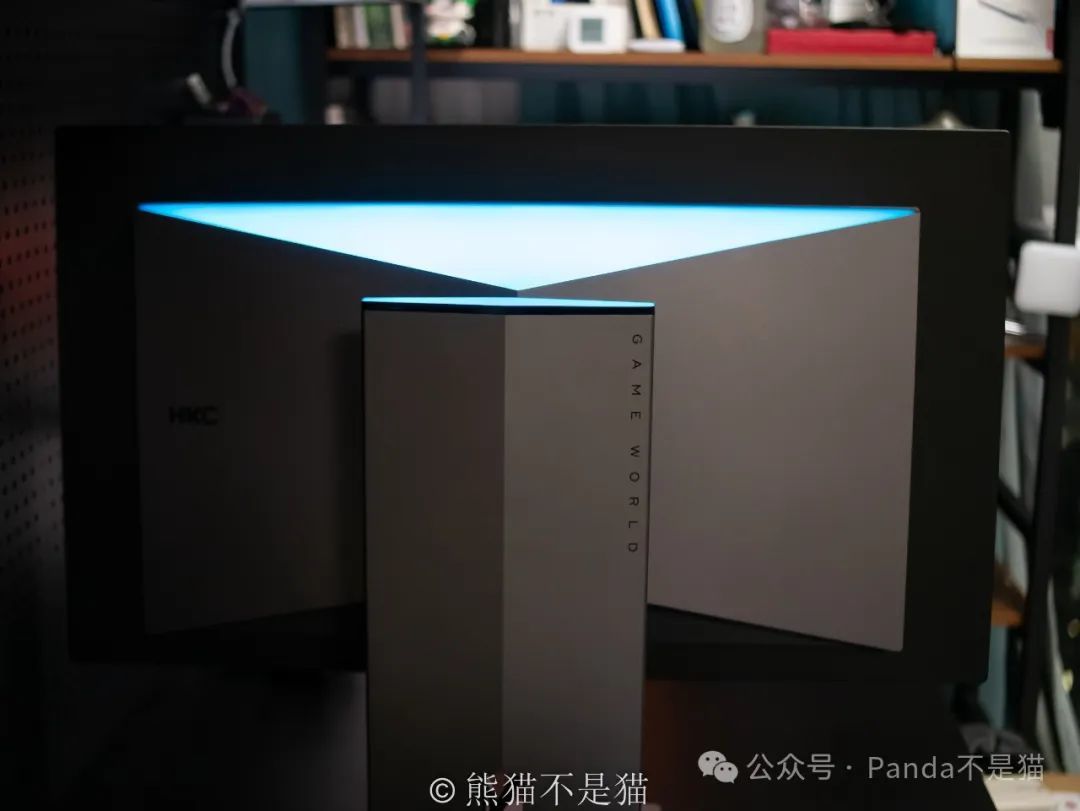 熊貓我個人是非常喜歡這款顯示器的顏值的,背面設計走的是極簡路線,而RGB燈光的加入,讓簡約之中又帶出了電競的氛圍。而且GS27QK的底座設計得很節省空間,採用了方形小底座,對於桌面空間有限的熊貓我來說,就非常友好。