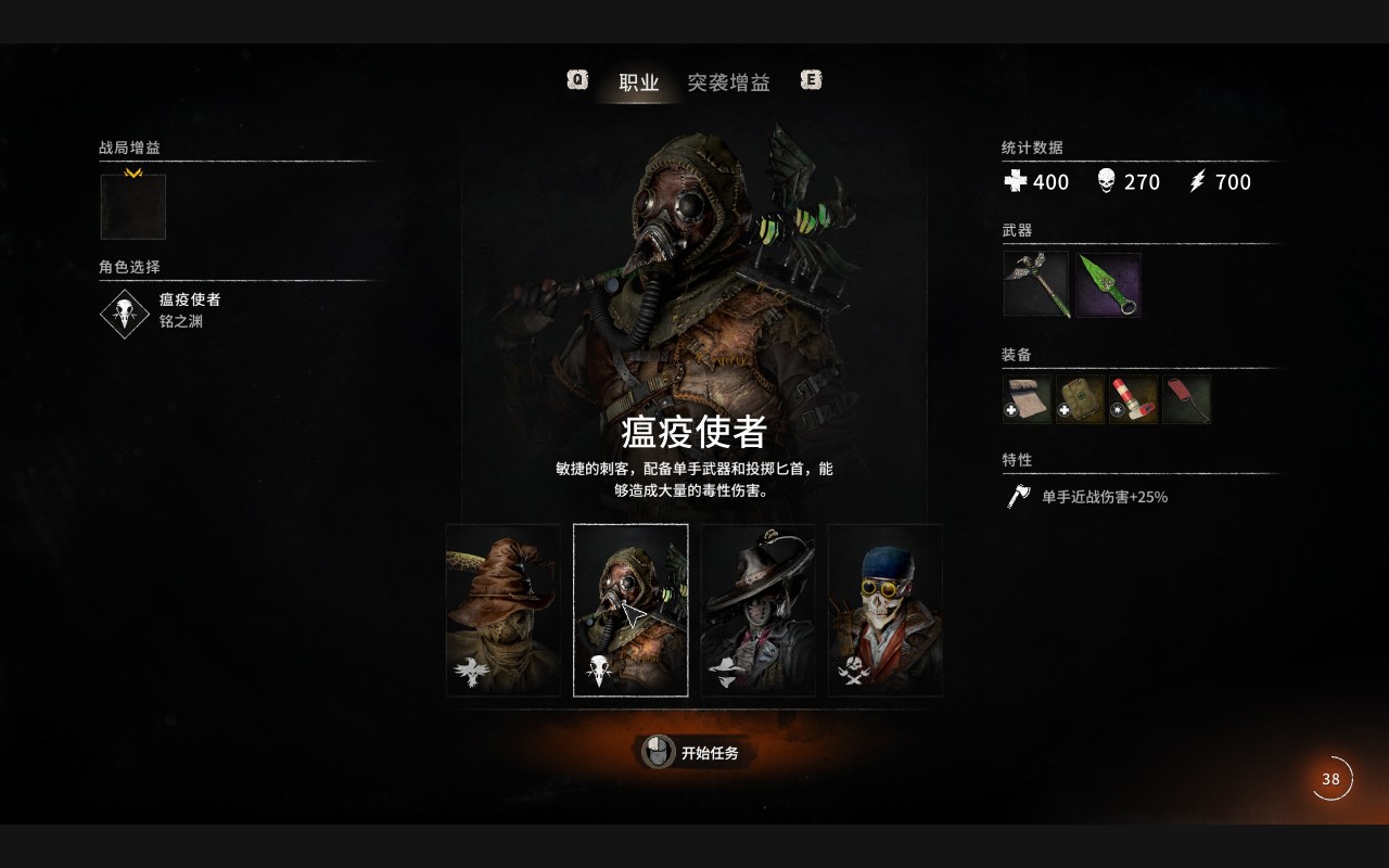 瘟疫使者:配备单手武器和投掷匕首,能够造成大量的毒性伤害。