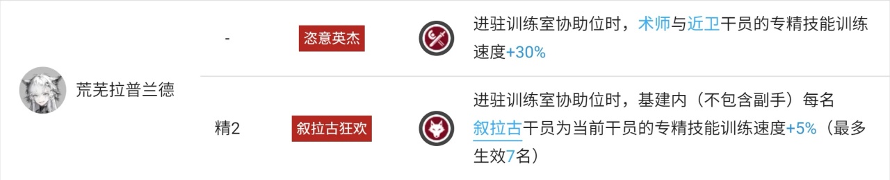同时,荒芜拉普兰德作为驭械术师,这个分支定位本身就是站场输出,因此天赋的限制条件可以说对她几乎不会产生任何影响。目前能想到的便是在一些节奏极快的关卡中没办法完成暖机吃满buff.....但这种情况下也没有必要硬上站场输出,特种干员等灵活单位明显是更优解。