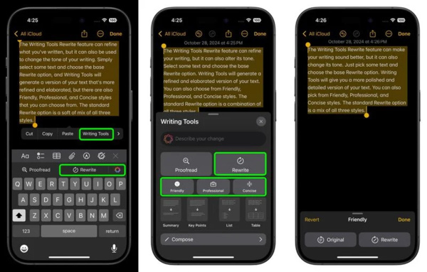 iOS 18.1中的寫作工具僅支持轉換友好、正式和簡化的語氣,而iOS 18.2則加入了更多自定義選項。