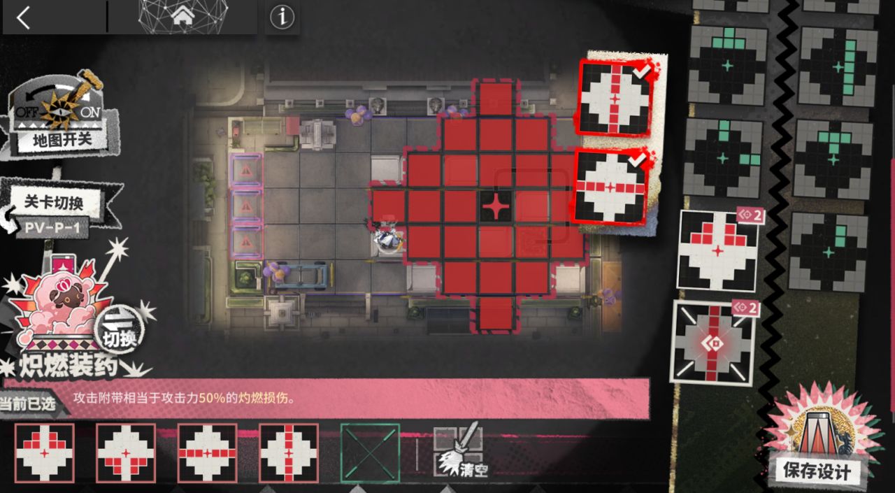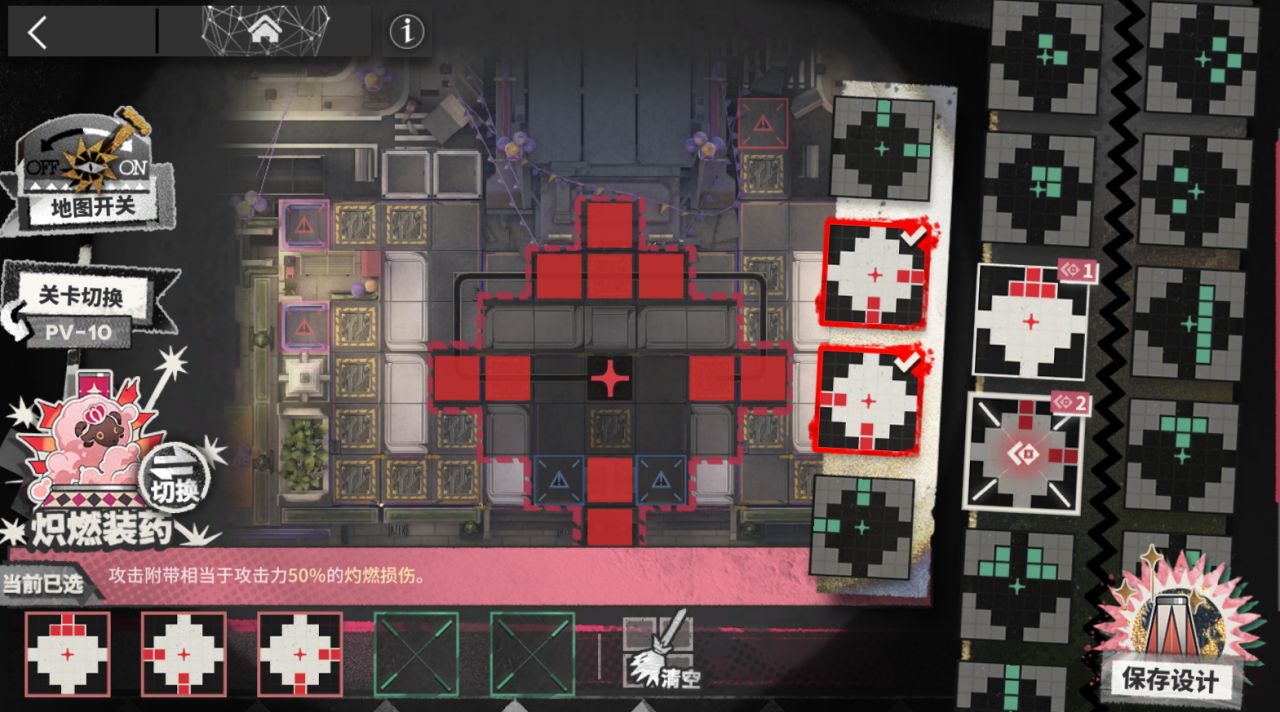 烟花用的上一关。范围改成最左边4格,实际上只要不覆盖我方即可。甚至你点击左边装配工坊,点击清空都行。