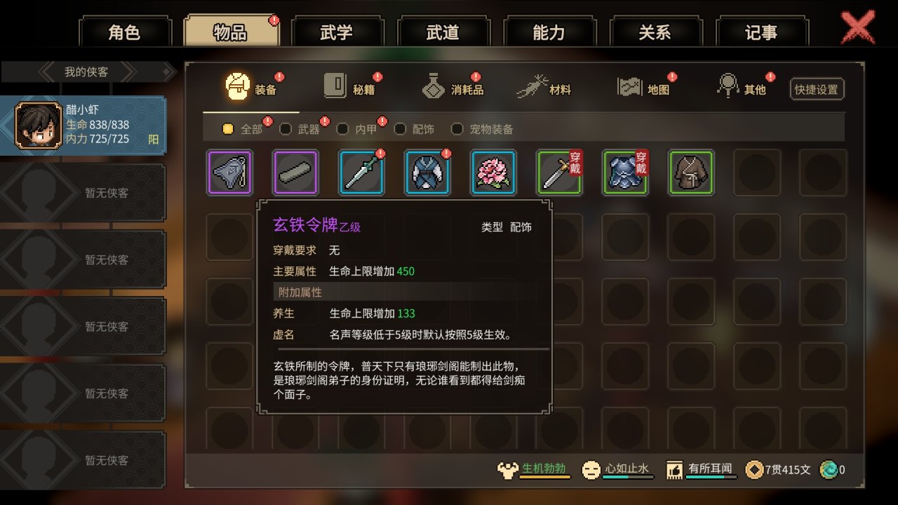 成功加入門派之後將會獲得玄鐵令牌,游龍劍,弟子裝,九宮劍法。
