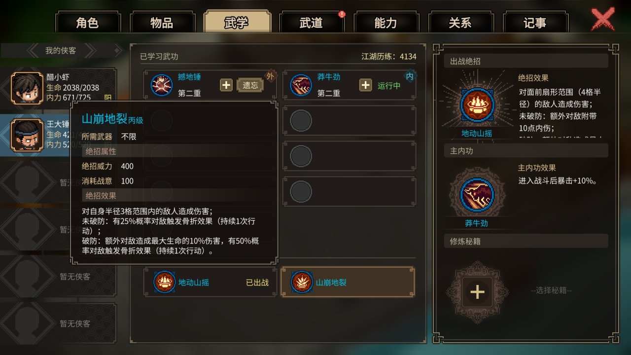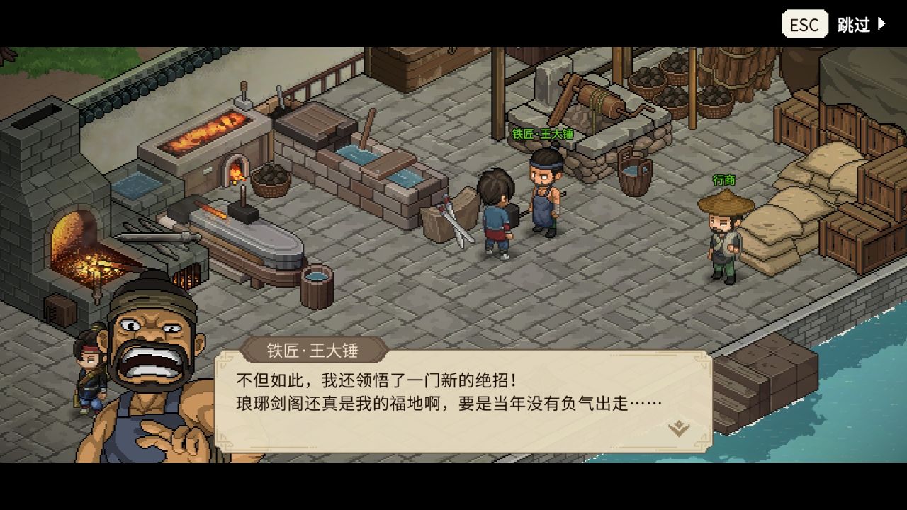 回到宗門之後,往左上角區域走,找到王大錘鐵匠對話,他會告訴你,他領悟了新的絕招,山崩地裂。