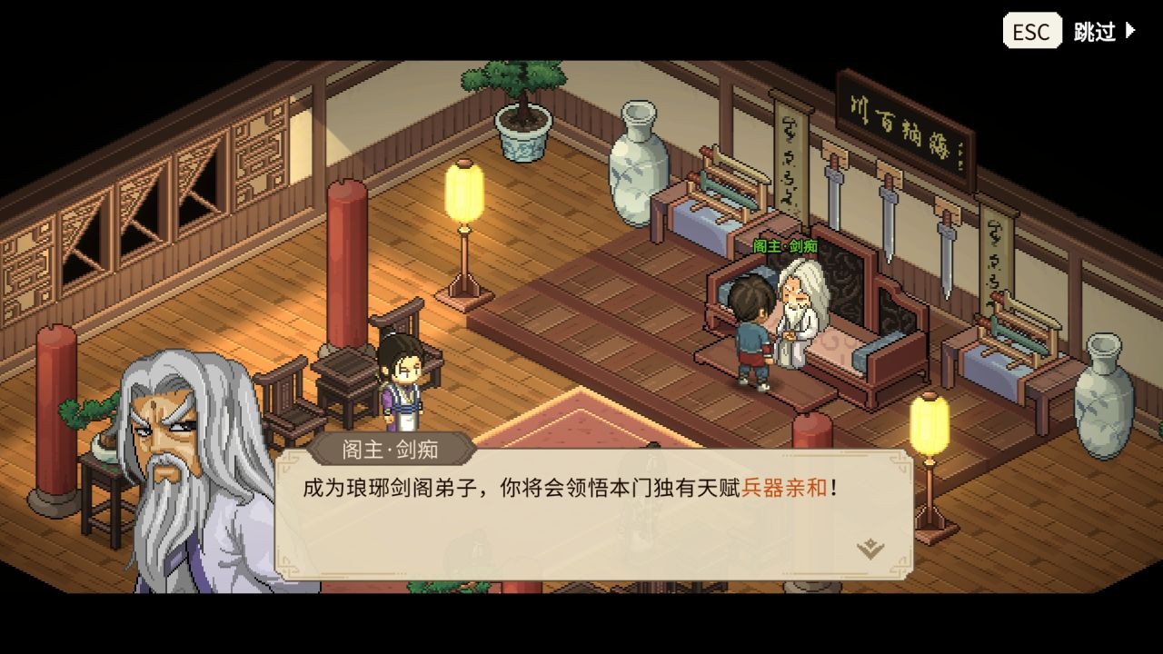 開局後兩個新手引導角色的對話,選擇功法,個人建議破甲勁,方便我們傷害最大化。