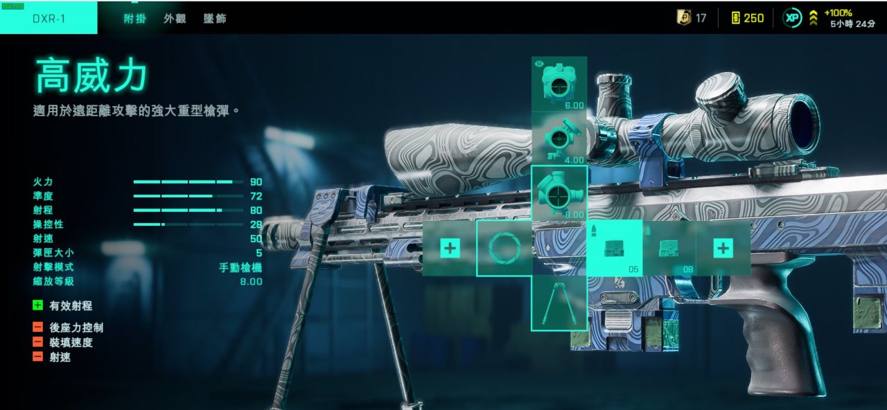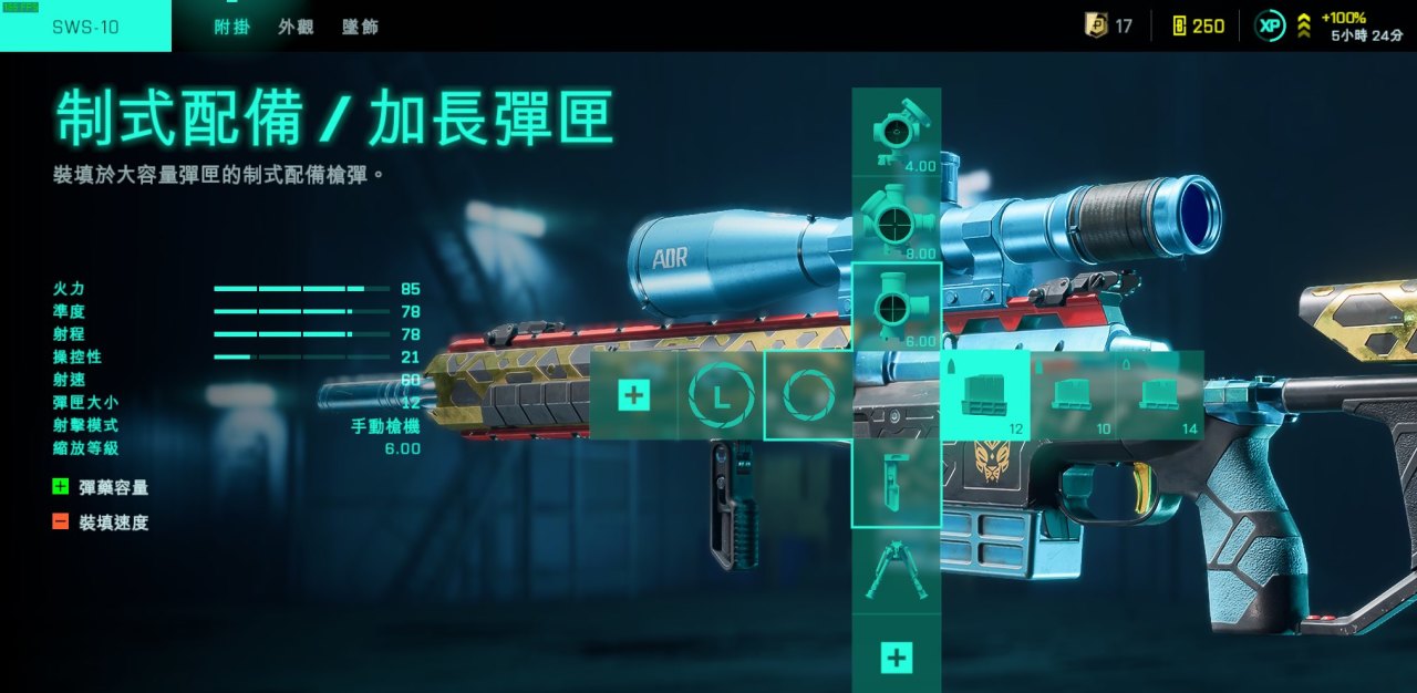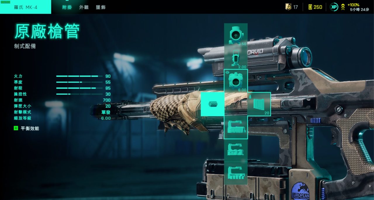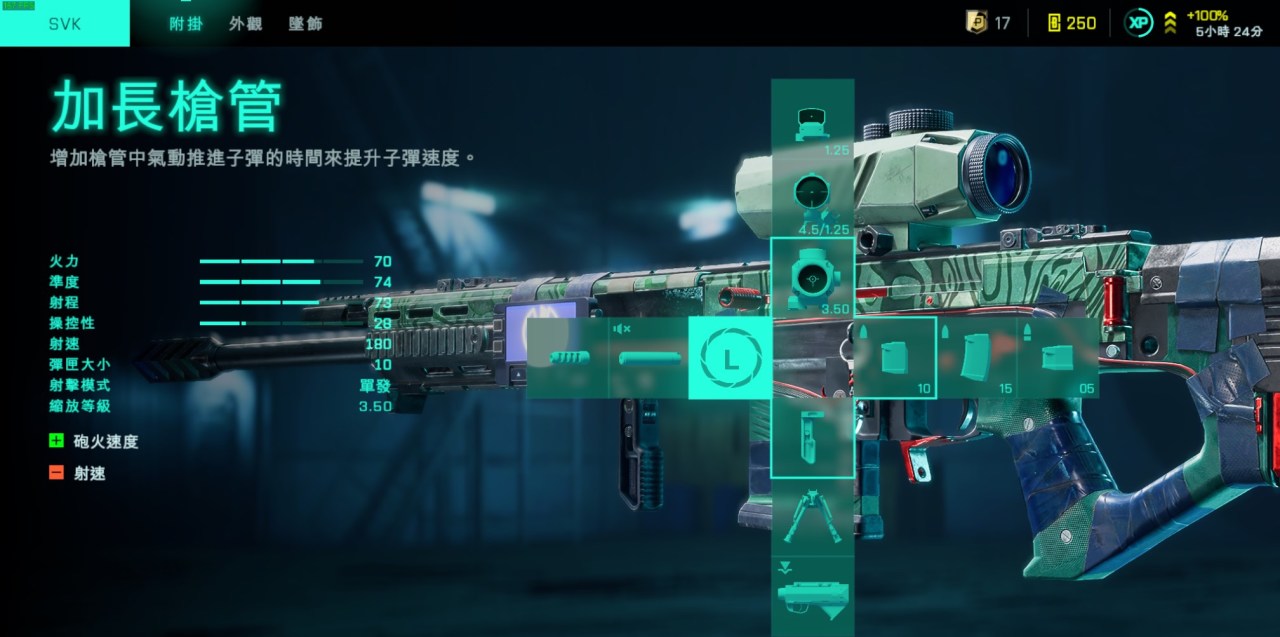 四倍以上鏡子會反光,優先使用10發彈匣保證續航。長槍管是不減實際射速的,萌新建議從戰鷹口練起、轉垂直再轉長槍管。