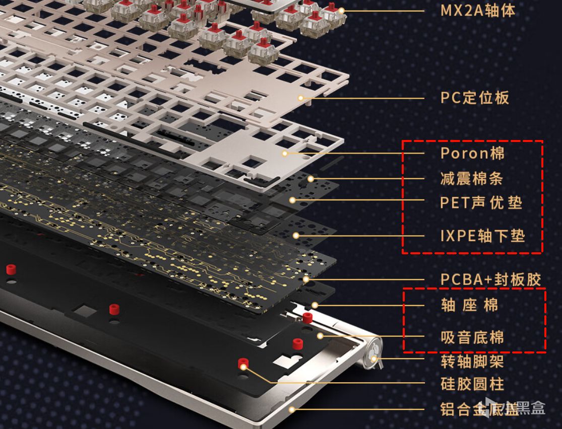 MX8.3在內膽下面做了一層硅膠柱層,向底殼做一個支撐。這樣即使按中間也可以保證軟彈。實現全局手感一致性。
