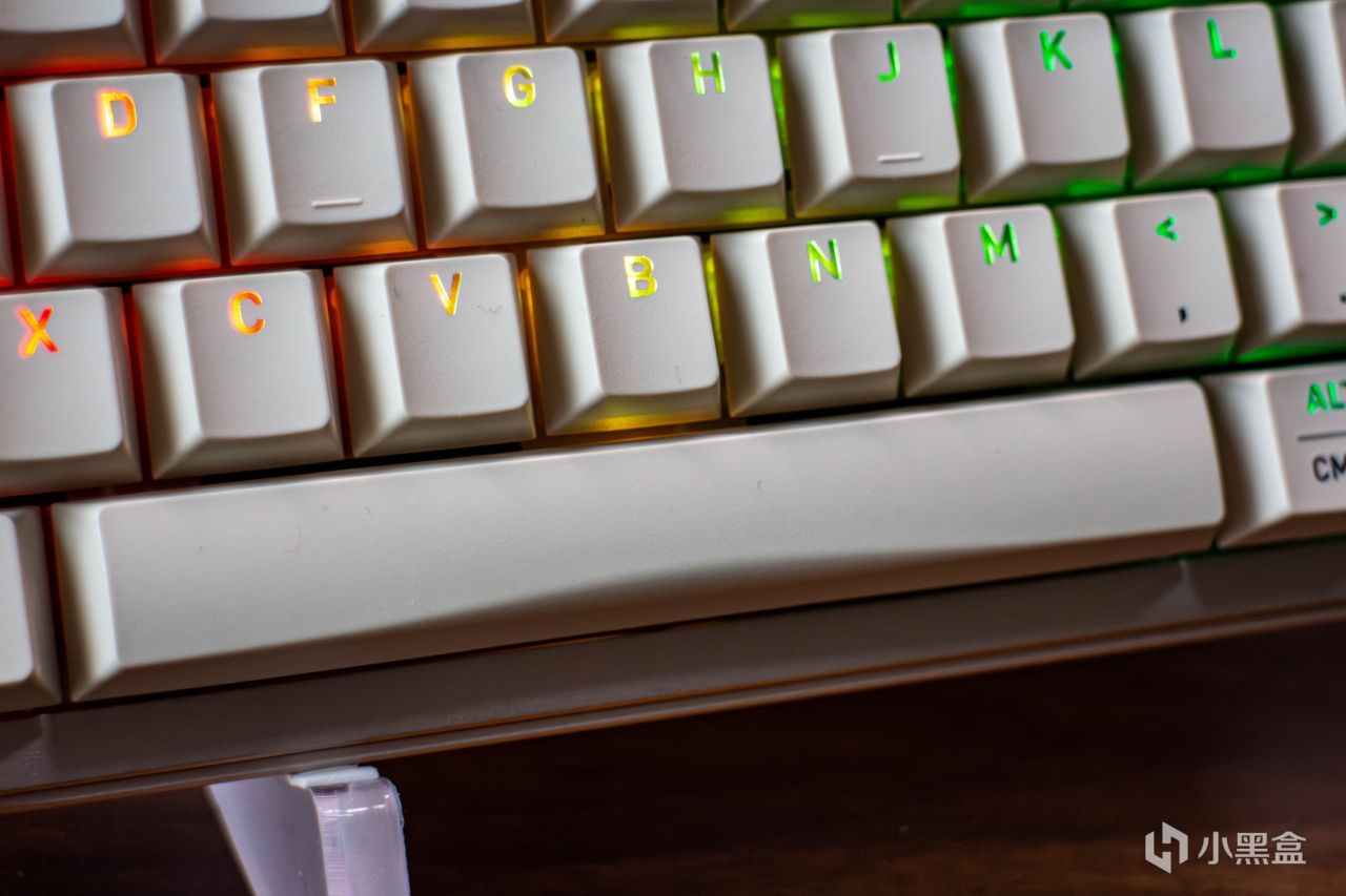 字體通透的PBT原廠高度鍵帽,這點很它的對手很有區別,我比較喜歡這種內斂剋制的RGB