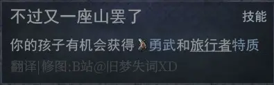 我们希望通过该技能点提前让玩家为继承人铺路,以此保障玩家想在下一代继续走该生活方式时能吃到旅行者特质加成。