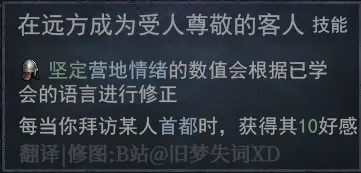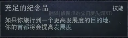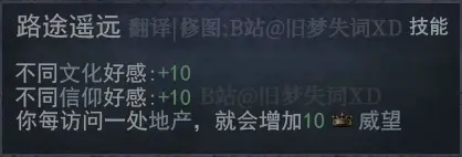 考虑到玩家有前往遥远的地方,我们决定增加外交范围。值得一提的是,该技能点配合探索名胜古迹可以达到拜访更大范围景点的效果。