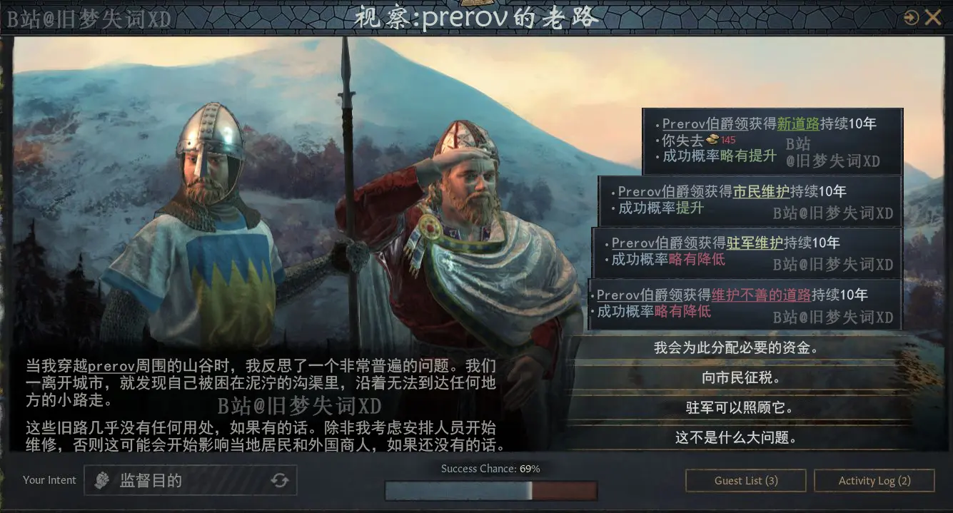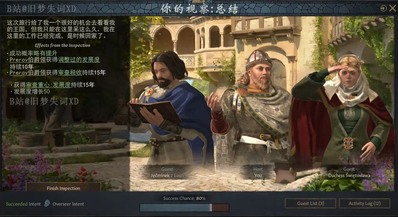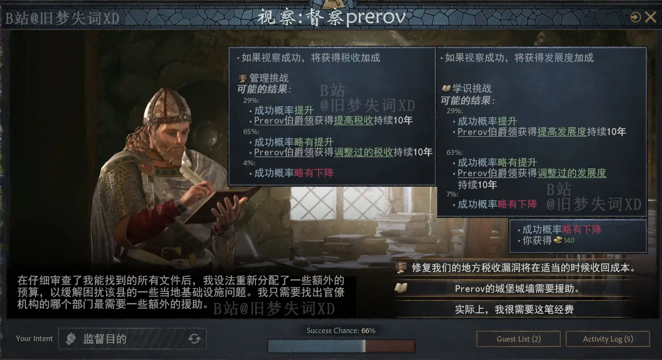 在视察领地的过程中,玩家会触发相当多的事件,让玩家有机会以各种方式影响伯爵领。其中大部分事件围绕活动最终是否成功而展开,也就是增加或降低成功率的事件。