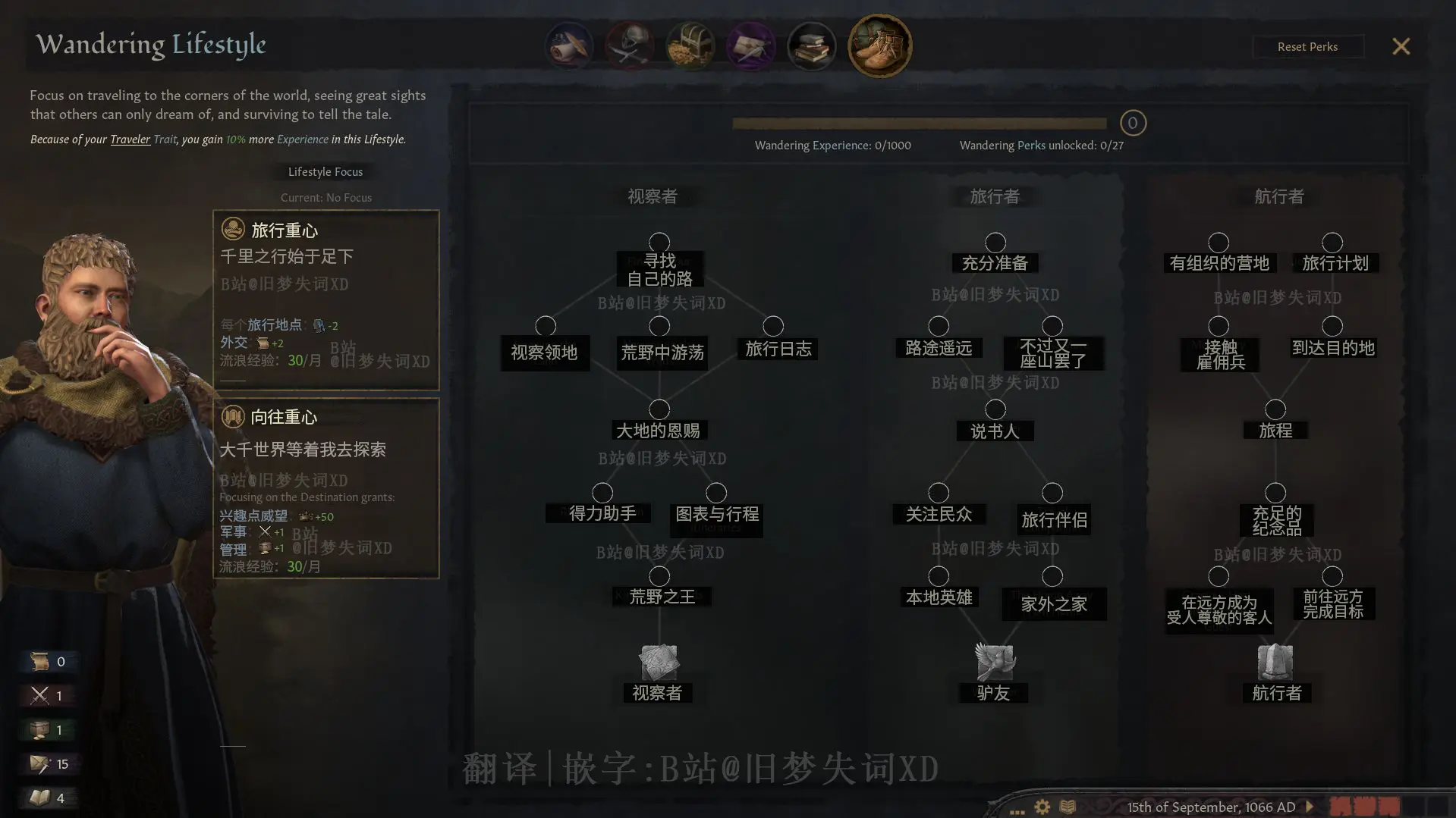 正如上期开发日志所述,新dlc将会添加一共27个新技能点,分别隶属于3个生活方式树,3个新特质和3个生活重心。与游戏中其他生活方式不同的是,它不与教育特质挂钩,而是与旅行者特质挂钩。