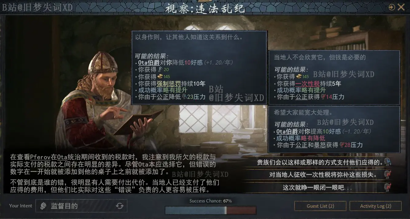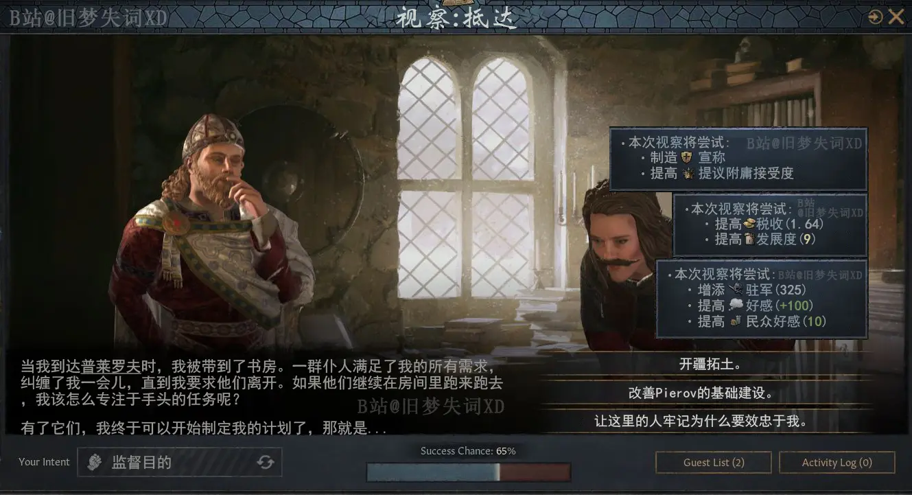 在本例中,我们决定将税收、伯爵领控制力或发展度作为我们的第一个选项,而在这里,我们可以在税收和发展度之间选择一个进行额外关注。同时,我们可以在税收和发展中选择一个作为额外关注点,这样我们就可以决定在成功视察领地的情况下哪个影响最大。