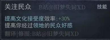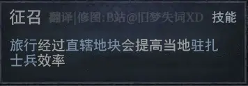 开门给一个简单又有效的加成,只要经过有驻扎兵团的直辖地时,就可以获得一个持续15年的5-10%的驻扎效率加成。