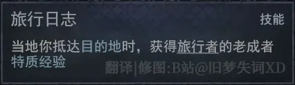 我们注意到玩家只会在于旅行途中的安全,这样就显得老成者特质几乎没什么用武之地。