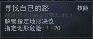 然而,当我们为无地角色设计该技能点时,发现不太合适。因为无地人能不断迁移营地,可以做到隔一天就能达到一个目的地。因此我们决定将加成设定为兴趣点上,同时还能与该技能树下面一个技能联动。我们最初保留了第一个想法,但是想到可以与另一个技能点联动,我们决定统一为无地人的机制。