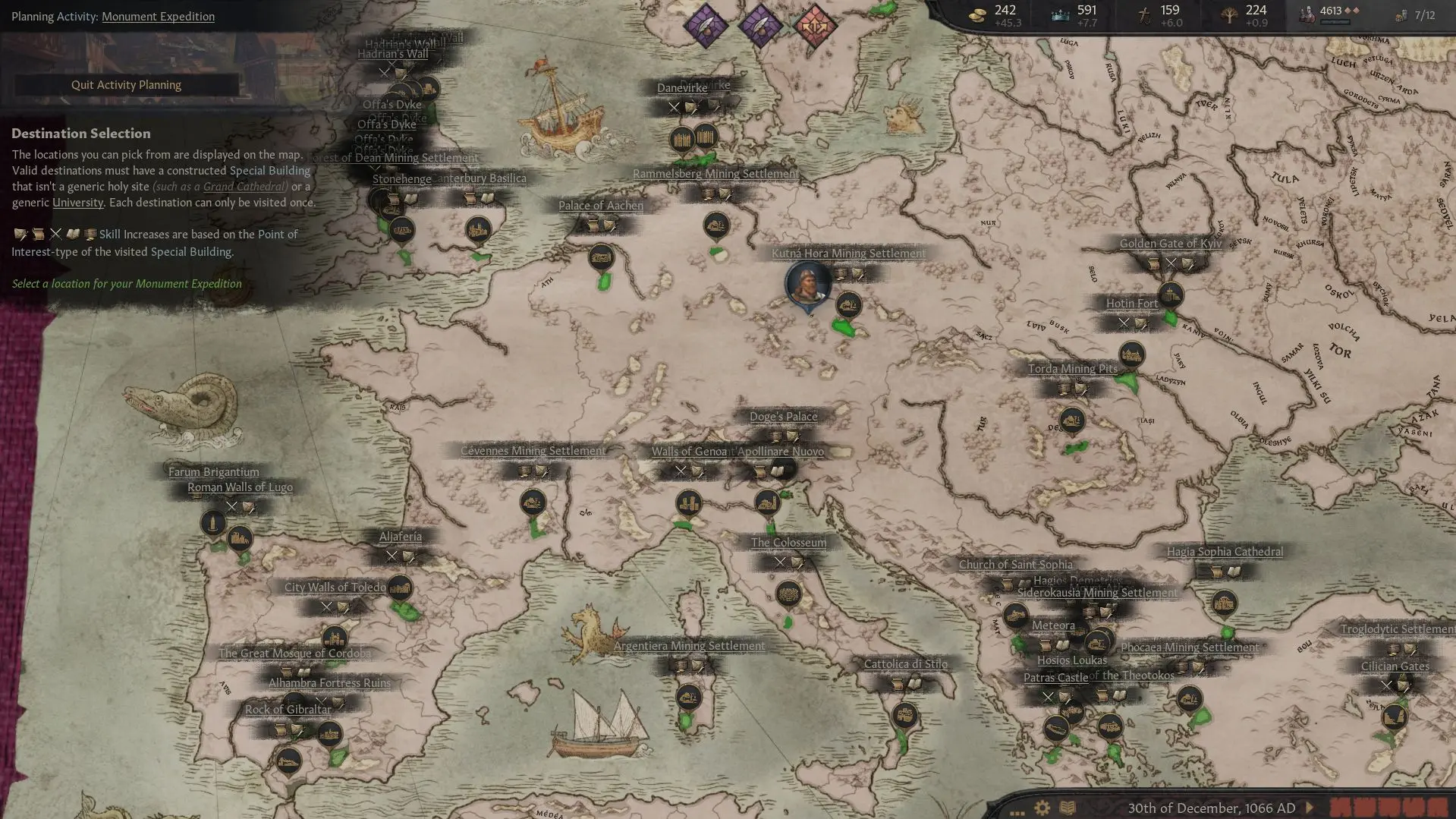 探索名胜古迹时三个新活动中唯一一个允许你出境旅行的活动。玩家可以前往世界上任何一处拥有特殊建筑的男爵领,因此他并非只适用于景点,而是绝大多数地块。