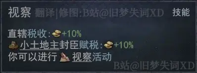 这是本条路线的第一个关键技能点,因为能够解锁视察活动。除了赋税加成,还有一系列事件链,我们将会在后文详细介绍。