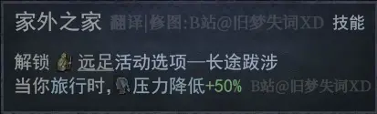 该技能点是减压的不二选择。玩家可以边走边减压,并解锁一个新的活动选项——增加远足的在途时间。
