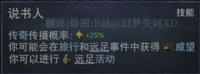 这是本作第一个涉及名声的技能点。 开门保障你的旅途安全之后,第二个技能便是获得威望的途径,因此玩家可以在参加活动或者远足的途中顺带踩点威望奖励。