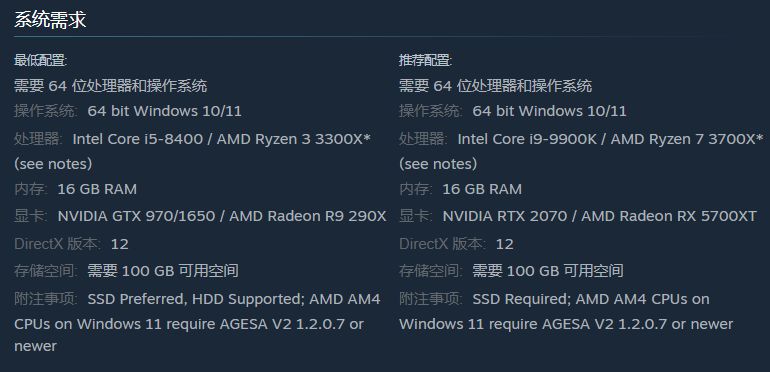游戏配置需求: