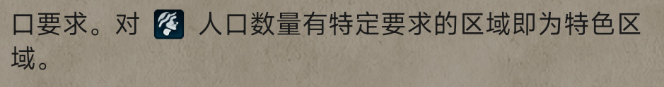 【特色区域】:特指那些需要人口数量限制的区域。包括【学院】、【剧院广场】、【圣地】、【工业区】、【商业中心】、【港口】、【军营】、【航空港】、【市政广场】、【娱乐中心】、【水上乐园】以及【保护区】和【外交区】等区域均属于特色区域。