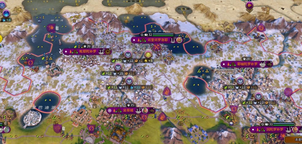 【淡水资源】:游戏中,城市市中心靠近河流、湖泊、沙漠绿洲等自然环境时,城市可获得淡水住房加成(河流+2,湖泊+1)。水渠可以从山脉上获取淡水资源。