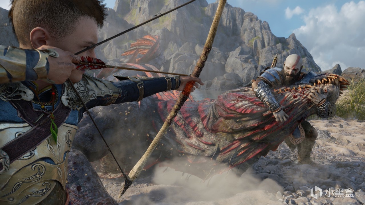 游戏在这时候做了一个惊人的转变,那就是阿特柔斯的分支戏,当镜头转换到其身上并能够操控的时候我直接惊呆了,本作为阿特柔斯打造了一套完整的战斗系统,其依旧使用弓箭作战,不但可以远程攻击还可以近战挥舞伤害敌人,动作模组相比奎托斯来说更加迅捷,而且可以更有效率的削减韧性,看来新战神的名号不是白吹的。