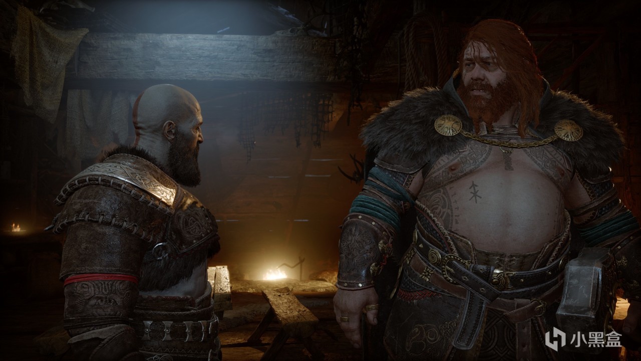 本作的整体规模更大,一镜到底的难度也超出了前作不少,首当其冲的就是多角色切换带来的镜头问题,游戏对此也进行了非常巧妙的处理,阿特柔斯首次外出的时候,镜头直接从伏在窗前的奎托斯面前下移,很自然的就衔接到了窗外偷听的阿特柔斯身上,而当其返回时和众人围坐在桌前用餐,镜头转了一圈刚好平滑的切换到了奎托斯的视角。