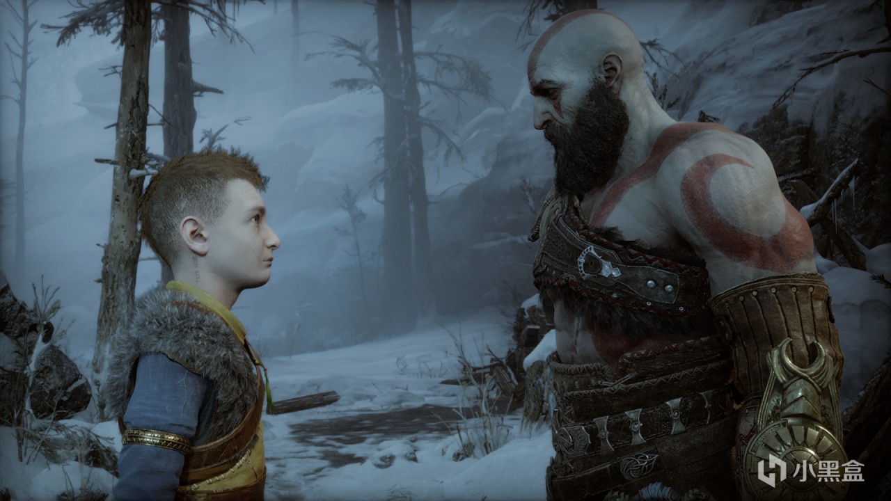 游戏的故事便发生在如此内忧外患腹背受敌的情况下,此时的阿特柔斯已经成长为了一个朝气蓬勃的青少年,能独自承担打猎的任务,而奎托斯则更显年迈,虽然还是一如既往的寡言,但其望向儿子的眼神满是对于其成长的欣慰和其安全的担忧,也许这份情感只有为人父为人母的玩家才能懂,游戏中的奎托斯与儿子年龄相差甚远,自己终归有老去的那天,儿子能否应对阿萨神族的追杀,能否在满是危险的九界中立足都是个未知数,因此奎托斯必须想尽方法用最短的时间培养儿子成长。