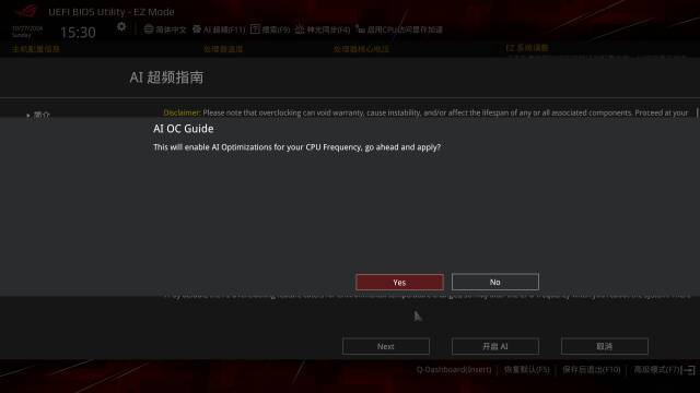 個人覺得最讓人驚喜的還是AI超頻的支持,畢竟純手動設置沒有相關基礎的話還是有些難度的,而AI超頻只需要點擊兩下就能快速開啓,也不用擔心參數設置不規範影響系統穩定。