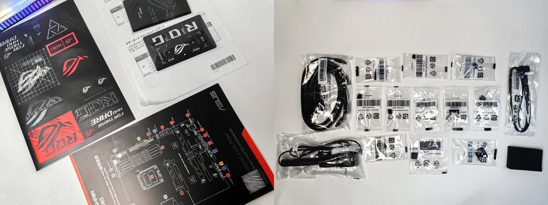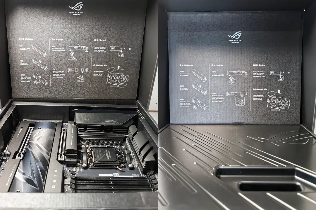 ROG X870HERO的豪華不僅體現在配置上,也體現在包裝上,禮盒包裝非常大氣,圖案、文字設計也有濃厚的藝術感和科技範,反正我剛拆快遞第一眼看到的時候內心是非常激動的。