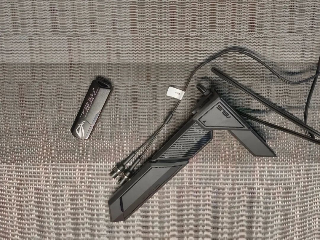 黑色WiFi7天線可拆卸,底部配了磁吸模塊,可直接吸附在金屬機箱上,同時也提供了一個存有驅動文件的U盤。