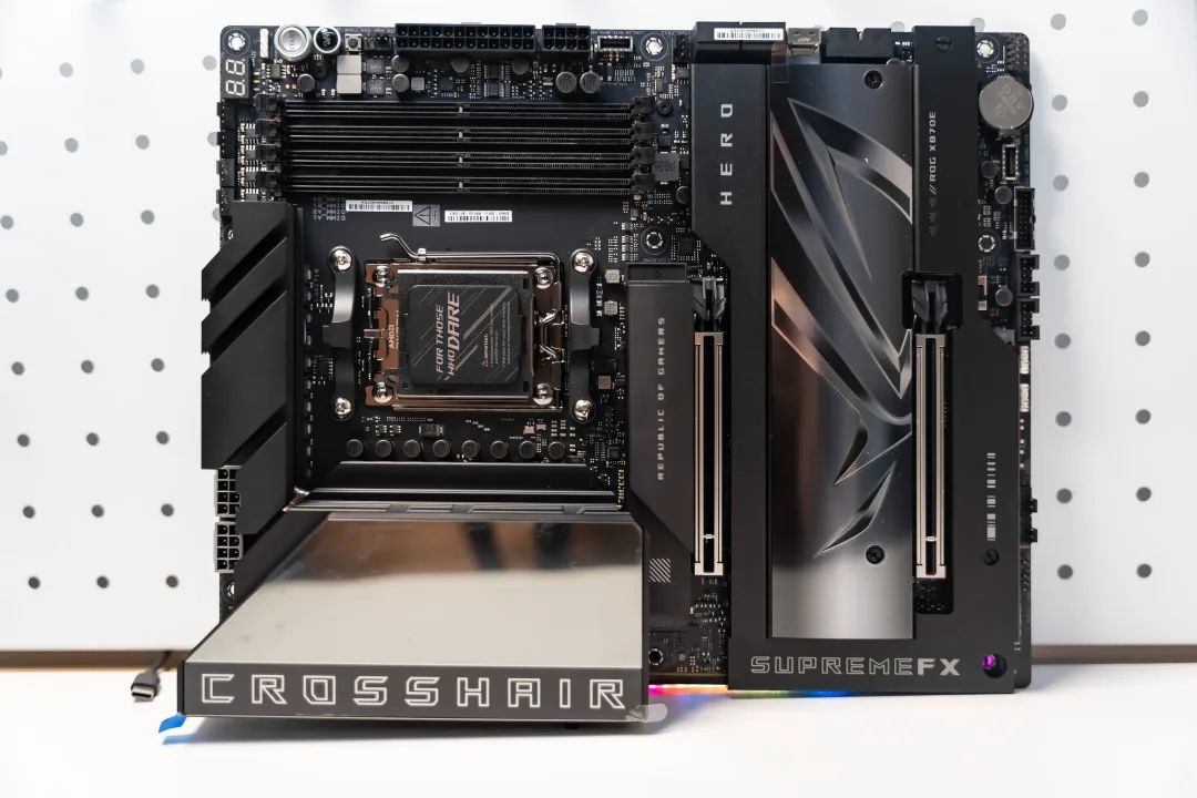 如果是X670E用戶的話可能會發現,X870E芯片組對比X670E芯片組,改變並不大,所以這款ROG CROSSHAIR X870E HERO的諸多亮點主要還是得益於華碩的用心和實力,不管是網絡、接口、插槽、光效還是做工質感,在目前同類型產品中都屬於一流水準。