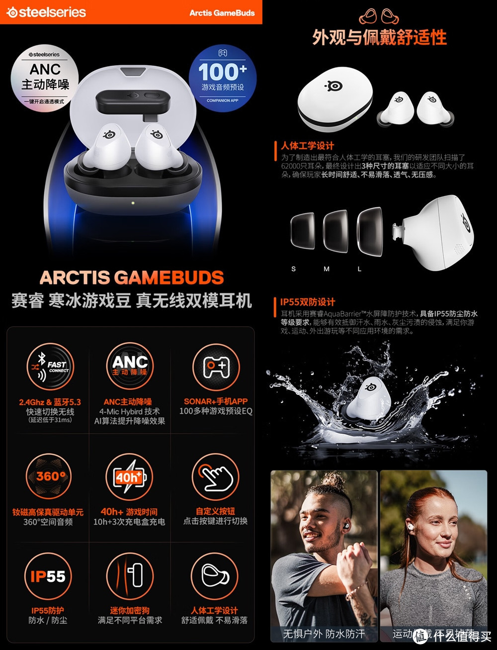需要強調的是,賽睿在遊戲領域的大數據積累具體體現在了遊戲預設上,提供100多種遊戲的預設,完全傻瓜化的操作,讓你更佳專注遊戲本身。在你戶外運動鍛鍊時,IP55的防塵防水能有效提升耳塞的使用壽命。Y1S1,貴一點真的好很多!!!