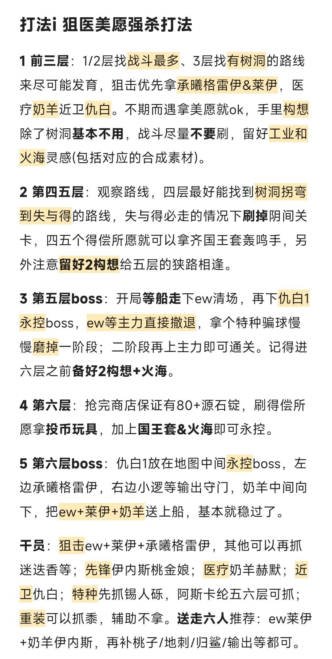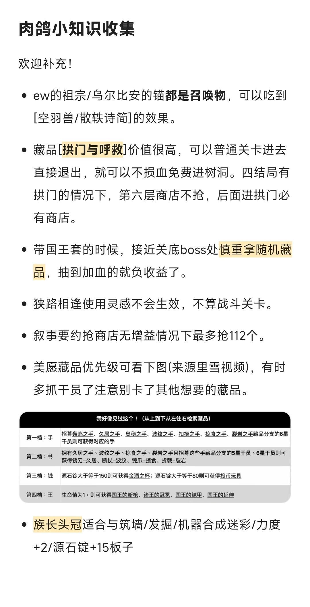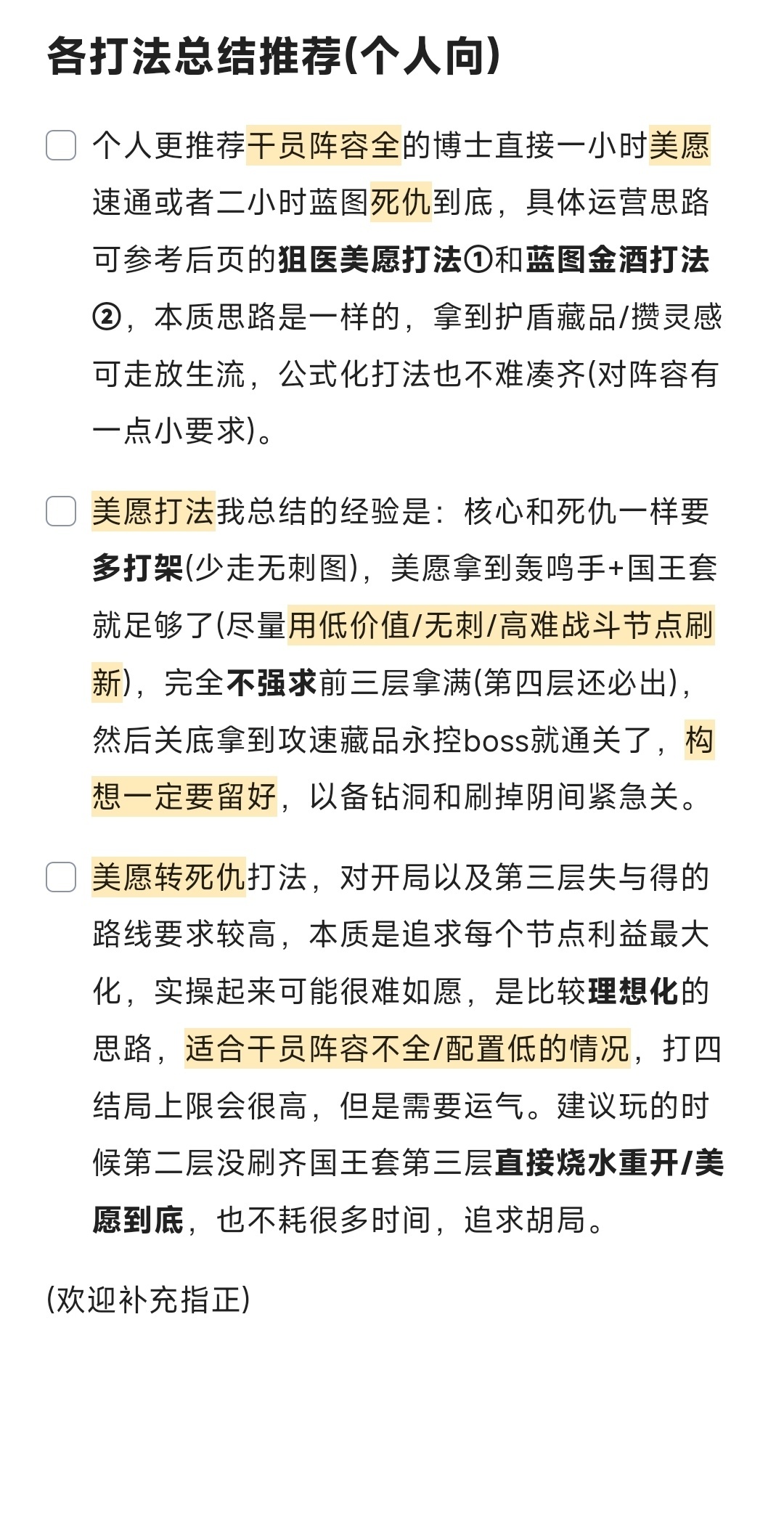 顺序:dlc新机制→结局四相关→干员推荐→发育思路个人总结推荐→狙医美愿/蓝图金酒/美愿种树转死仇公式打法细节→肉鸽小知识收集