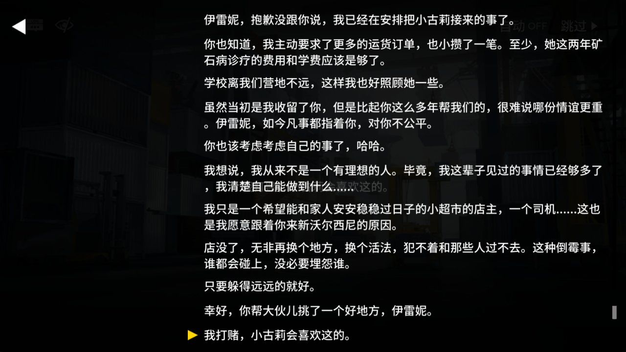 这个宛如新生的城市的市长便由伺夜担任,为了把控城市的供给运输其与拉维尼亚将本由家族们掌控的物流职责全权交予第三方势力成就卡车互助会