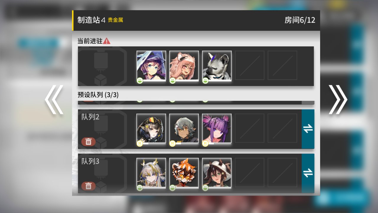 现在可以为每个设施设置预备干员队列,最多可设置三队!日后就能在主界面直接一键替换或休息