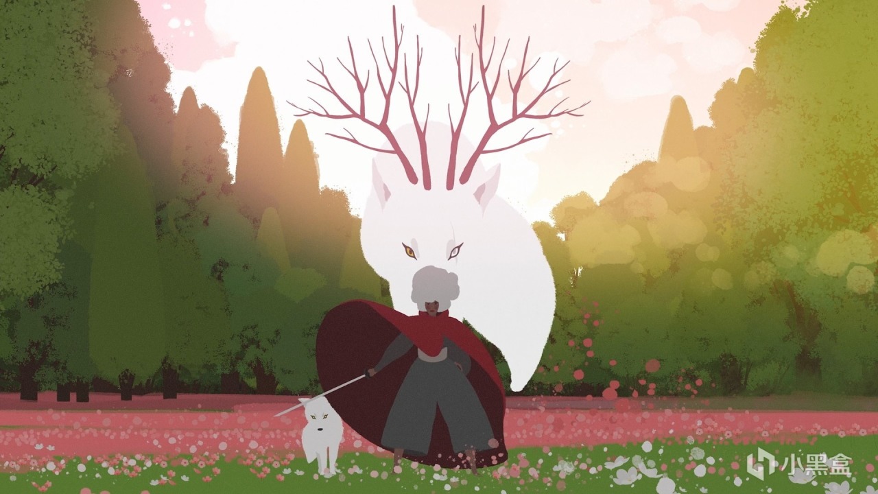 最開始看着春意盎然的森林我以爲是“色綠”,看到女主角以爲是“色黑”,在狗子存在感越來越強之後以爲是“色白”,不過最終感覺上,還是有一種隱藏在敘事模式中的“春去復返”的循環感:邪惡被驅除,生命回到了循環,一切又是五彩斑斕的顏色,所以或許用單純的色調並不能形容這款作品,因爲它同時呈現着“死”的灰暗與“生”的絢爛。