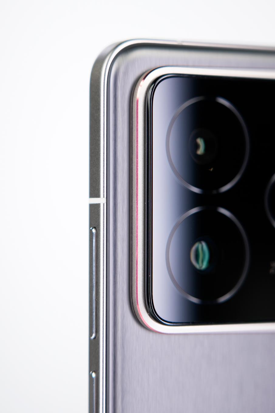 如果我們將視線集中在真我GT7 Pro的鏡頭模組,可以看到在模組外圍金切角呈現出了醒目的橙紅色光澤。