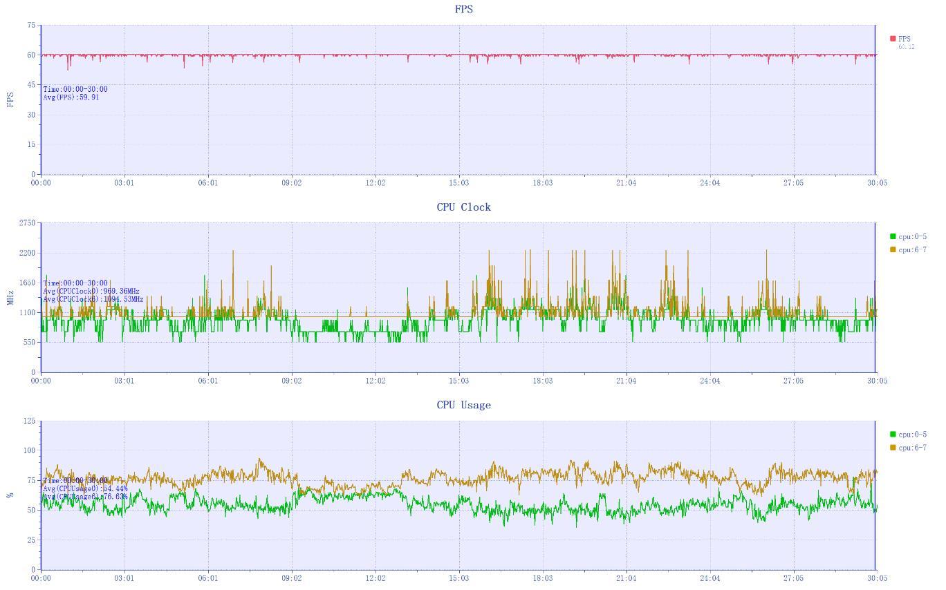 30分鐘測試結束後,真我GT7 Pro運行《原神》平均幀率爲59.91幀,流程中出現了多次幀數波動,但好在持續時間較短,沒有對遊戲體驗造成明顯影響。