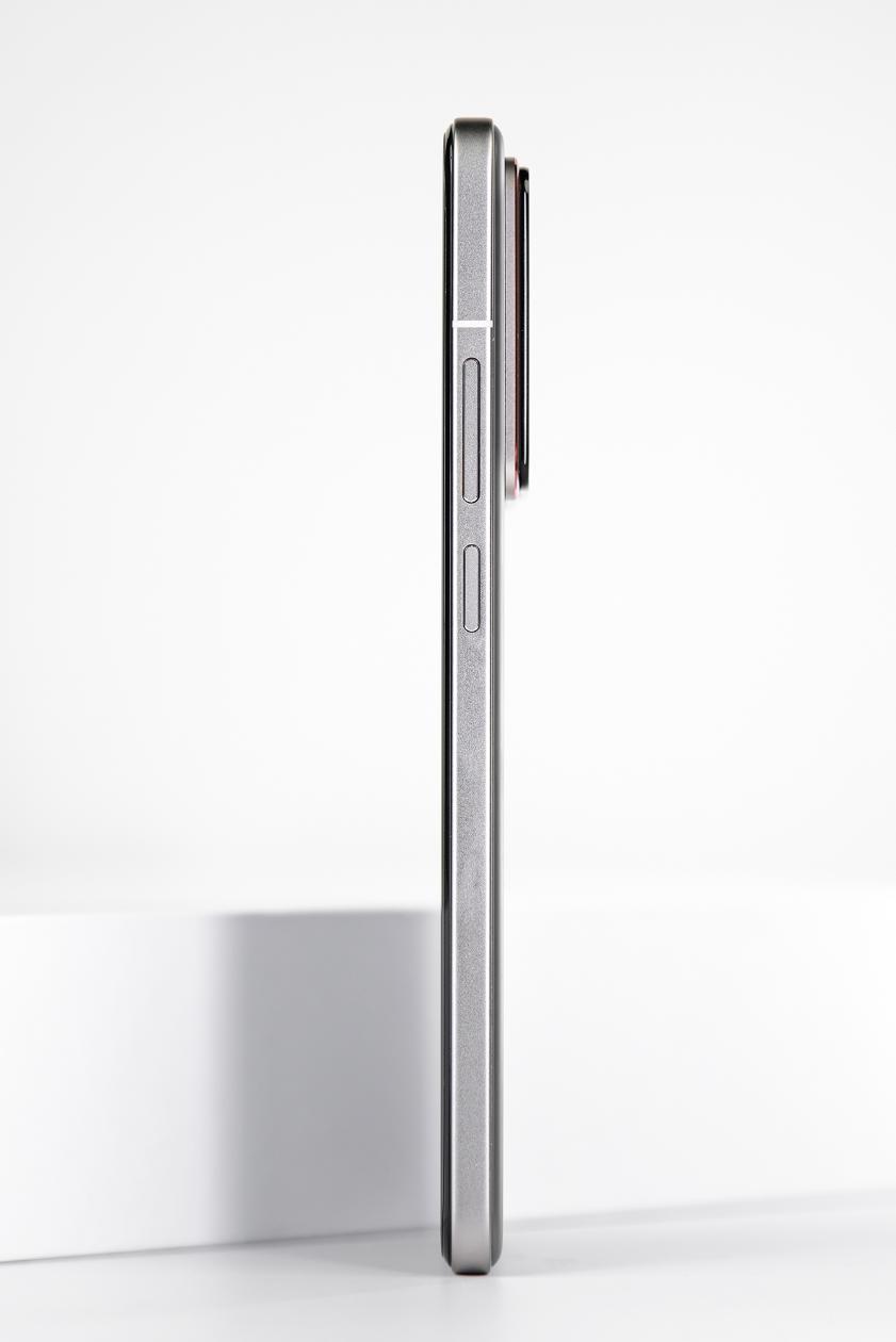 側面,真我GT7 Pro採用磨砂金屬中框,質感表現良好,但按鍵開孔公差略大,存在一定虛位,按鍵手感略顯鬆垮。