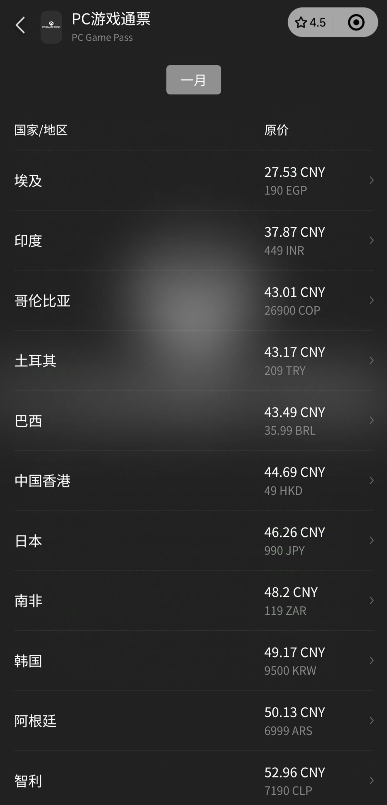 经过一系列的比价,仿佛没有合适的低价区,我原来的XGPU是土耳其区的,也偶尔去土耳其(礼品卡),印度(去年VISA可以,今年不行),南非(VISA),巴西(PayPal)买些低价游戏,但现在低价区都不好混了。