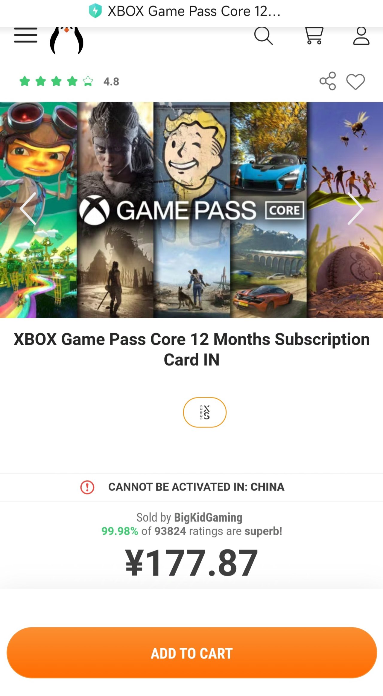 经过比对,我在kinguin上找到了一年期的XGP CORE,一张178元,而且支持微信支付宝。