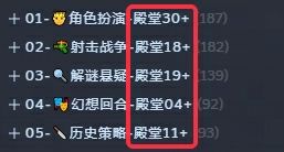 遊戲分類名稱後面,大家看到那個“殿堂**”是我自己的一個標準,後面數字代表這個分類下,達到我認爲“殿堂級遊戲”的數量,