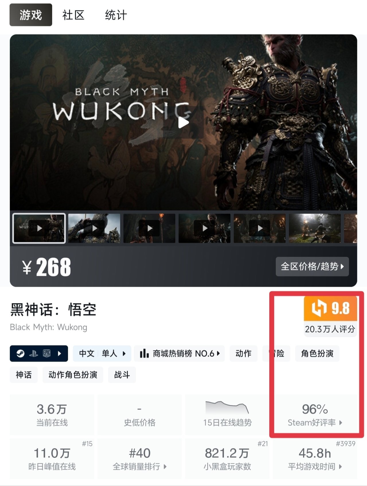 當小黑盒評分高於9(絕大多數打5星),Steam好評率超過90%(獲得絕大多數人推薦,沒有惡性BUG),MC評分超過8分(MC一般對大作評分更高,獨立遊戲普遍不高,整體也更挑剔,像我覺得能到9分的黑猴也只有8.1,所以標準會放低一些),我會歸納到“殿堂”級別。